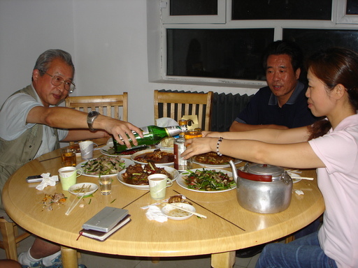 帰りはアルコールを一滴も飲まなかった駱さんがパジェロを運転して行くことになり、車の中では張さんが気持ち良さそうに、カー・ステレオから流れる吉幾三の「酒よ」に合わせて日本語で気持ち良さそうに謳い続けている。時折、Y字路になると「湾右!ワンユー」と言ったり、「湾左!ワンゾー」と言ったり、「直進!ツーソン」と駱さんに指示しているうちにホテルに着いた。時刻は北京時間で翌日の2:00を回っていた。