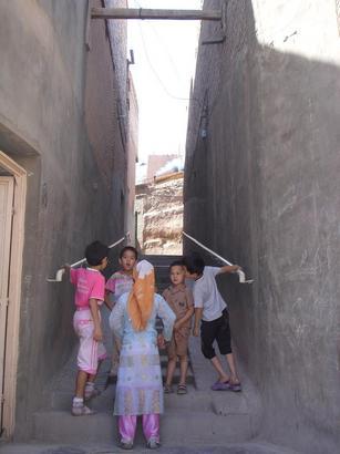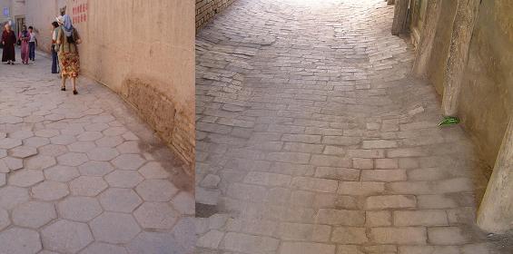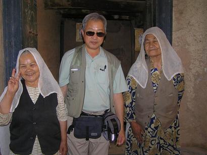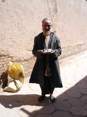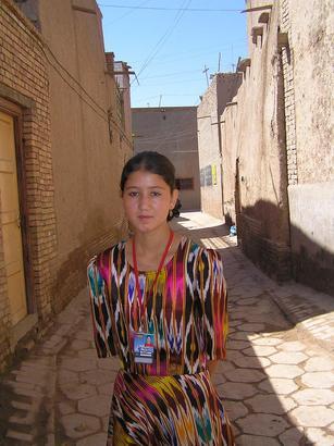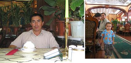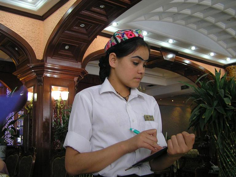 店内は綺麗で、カシュガルでも有数のレストランであることが分かる。ウィトレスが注文を取りに来たのだが、不思議な顔貌にひきつけられた(写真上1)。眉毛が濃く.はっきりと塗られているだけでなく、眉間も塗られ、まるで二つ目小僧なのである。グランベールさんの話では、未婚の女性の印なのだそうだ。少数民族の中に残っている風習らしい。