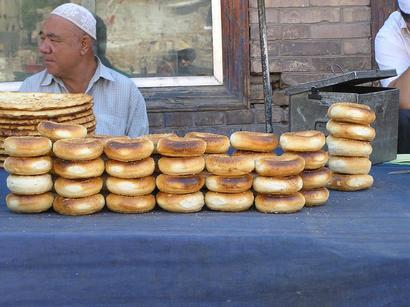 老城には電線が張り巡らされていて生活に使われていうことが分かる(写真上2)。そして城内では、野菜等の食料品の青空市場があった(写真上3)。城内に入ったばかりの所は柳を主体とした木々や、貯水池、天山山脈の行き解け水を曳いた水道口もあった。飲めると言うので、その水を手に掬い、一口手皿でのどを潤した。駱さん、グランベールさん、共にその様にしたのを真似ただけだが、これが日本に帰国直後から始まった猛烈な下痢の主因になったのではないかと反省至極の行動と言えた。