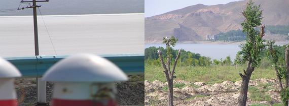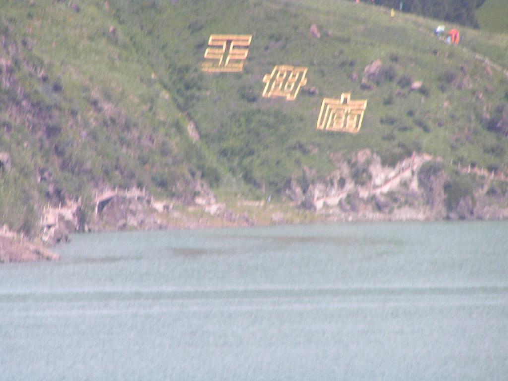 パオでの遅い昼食を済ませ、先程のパオの管理人主人(先程まで相手をしてくれたのは奥さんか)の運転する小型バンで元の場所に戻る。そして湖面の方に降りて行き、湖面