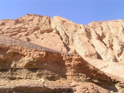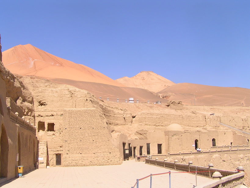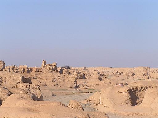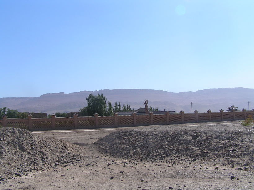 ゼベクリク千仏洞に行く途中に、既に火焔山を通行する三蔵法師一行の像が(写真上1)見えていたが、帰途は下車し、赤黄色に焦げた砂礫の上に立ち、北京時間で丁度12:00頃の灼熱地獄を体感した。(写真上2)