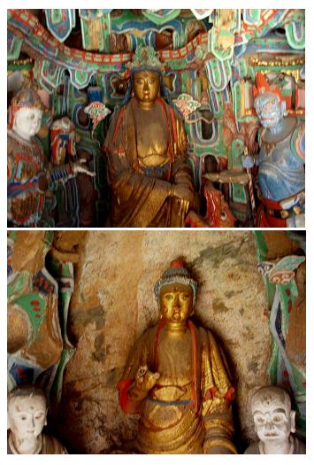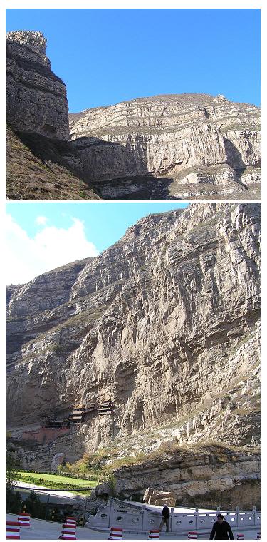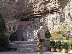 そして、程なく懸空寺に到着した。北魏時代後期に建設され、現在までに1400年以上の歴史を持ち、今回訪問した寺院のなかでは最も古い。「恒山」のもっとも険しい場所にある金龍渓谷の絶壁に天峰嶺に向かい合って建つ。 絶壁の隙間にある空間で寺院が雲に乗って飛んでいるようである(写真1)。現存する懸空寺は楼閣47余り、絶壁にぴったりと張り付くように建造物が並んでいる。 楼閣は上下に階層のある造りで、楼閣同士つながってはいるものの建築条件により高さがずれている。 屋根瓦が黄色いのが特徴(写真2-1〜2-4)で日本の寺院の屋根瓦の色と大きな特徴である。黄土色(おうどいろ)というよりコウドイロというのだろう。この様な色彩の瓦は北京でもあちらこちらで見られる。黄色、青、緑、赤は多くの中国寺院で用いられているが、元時代以降黄色い屋根瓦が用いられたり、黄色く上塗りされたということもガイドさんに聞いたことがある。 もっとも高い建造物はふもとから50m、楼閣や仏殿はすべて曲がりくねって廊下でつながっている。 懸空寺は北魏の時代の僧侶「了然和尚」が創建、その後仏教、道教、儒教すべてが共存する寺院群となった。釈迦、老子、孔子が一緒に祀られている楼もあった。勿論釈迦像や菩薩像がけが祭られている楼屋もある(写真3-1、3-2)仏像等はいずれも彫像ではなく塑像という感じで白塗りしたあと金粉や青赤緑黄色が塗布された感じだったが実際のところは分からない。 とにかく冷たい風が肌を刺す。 楼閣を上にあがるほど寒さと高さにブルブルと震えてしまう。その寒さから身を護るため暖かそうなコートを着ている人が目立った。しかも少人数の団体に多かった。異様な感じがしたので、ガイドの田さんに、 「あの人達は皆同じコートを着てどんな人達なのですか?」 と聞いてみた。すると、 「貸しコートを着ているのですよ。」 とのことだった。 尚、冒頭でてきた「恒山」というところは、金庸の武侠小説ファンでれば、すぐピンとくる。例えば「笑傲江湖」には武林勢力として、少林派、峨嵋派、崑崙派、崆峒派などと共に五嶽剣派という山岳を根拠とした剣派があり、崇山派、華山派、衝山派、泰山派と並んで、恒山派というのがあり、それがここ懸空寺のある恒山に本拠をおいている設定になっている。 恒山派はこの物語の主人公である令狐冲が強い関係を持ち、一時的にこの恒山派の総師となる。恒山派は尼僧の集合した教団であり、剣派でもある。 令狐冲が、恒山派と関わって、恒山派の総師になるまでの過程が実に面白い。 そして、作者金庸はこの恒山派をことの他暖かく扱っている。 金庸の小説は漢民族と異民族と対比させ、中華の地に侵入してきた異民族とくにモンゴル族を怨恨し、漢民族を援護するする立場をとる物語が多いが、モンゴル族を祖とする異民族が建国した北魏に因んでいることが容易に推理できる恒山派を暖かく扱っているのが、金庸の小説の底流に流れる基本思想と趣を異にしている感じがした。 「笑傲江湖」は金庸の小説のなかでは全七巻という長編だったがあっという間に読み終えてしまった。 その恒山にいるとその舞台にいるようで楽しかった。今春の昆明の旅では石林で「崆峒」という文字に触れた。そして今回は意図せず「恒山」に出会うこととなった訳(写真4-1,4-2)である。次は少林寺にでも行ってみようか。 金庸の武侠小説には中国各地が登場するので、その土地に出会うのも楽しみになってきていて、徳間文庫本の金庸の小説を欠かさず読んでいる。 従って、司馬遼太郎の「街道をゆく」と、この金庸の武侠小説とが旅心を刺激し、旅がこの両書籍の読書熱を刺激するという循環が出来てきたように思い始めている。 寒風厳しい懸空寺を後にして、昼食をとったあと木塔寺に向かうことになった。