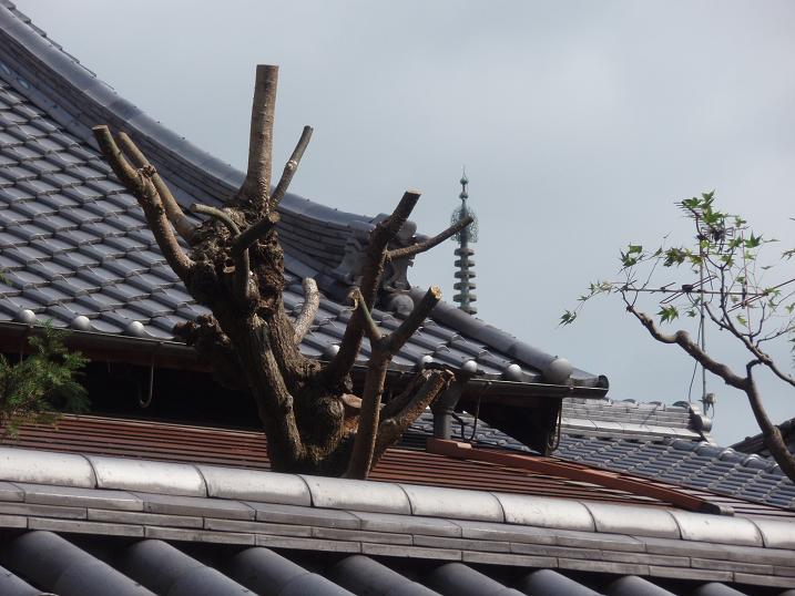 現在、薬師寺と興福寺が法相宗の大本山で、玄奘三蔵は法相宗の始祖に当たるとしているのだそうだ。薬師寺の管主をはじめとした僧侶の名は殆どが最後に”胤”か”奘”という文字が入っている。拝観を終え、再び両側に芝が一面絨毯のように敷き詰められた通路が現れ、遠方に「白鳳伽藍」の東塔と西塔の相輪が見えた(写真4)。そして再び手前に白萩の花の咲く名前知らずの山門をくぐり、振り返ると、何故か、この門が歪んで見えたのである(写真5)。"新しき”から古き"の門をくぐる時、人は"歪み"を感ずるものかも知れない。その逆も真なり、か。