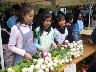 ここでは、元気な南小のみんなが、自分たちで作った野菜を売っていました。