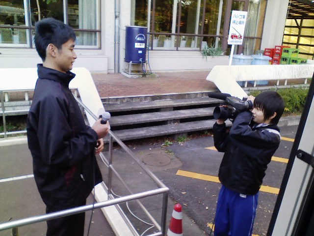 今日の午前中はデジタル体験館の開店準備をしました。そのあと名刺の受け取り方、渡し方を教わりました。その後、局舎に戻り、スタジオ内を案内していただきました。スタジオ内はドアを閉めると外の音が全く聞こえなくなったので驚きました。お昼を食べたあとは、市民会館に行き、日曜日に放送する生中継のためのケーブルを這わせました。その途中、カメラの使い方を教わりました。「1台120万円だからね〜」と脅かされ(5分後には30万円上がっていました・・・)ビクビクしながら撮影したりリポートしたりしました。この二日間でいろいろなことを教えていただきました。明日が最後の1日ですが精いっぱい頑張りたいです。