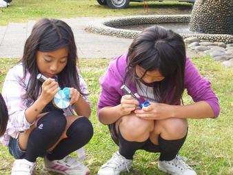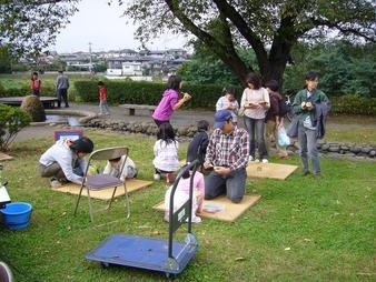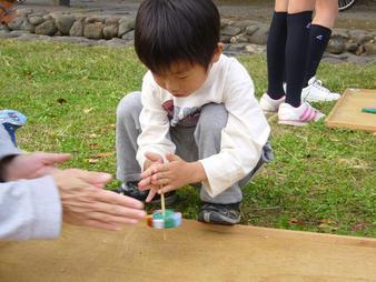 写真は、たくさんのお友だちがコマを作っている様子♪