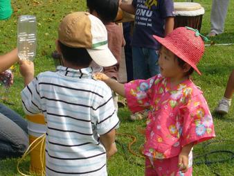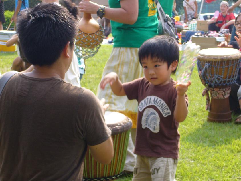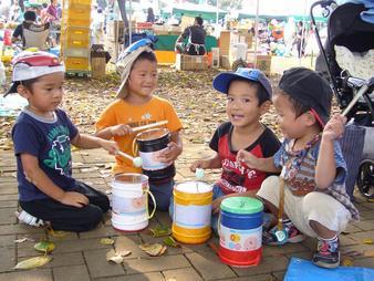 ペットボトルで作るマラカス、手作りの太鼓、手拍子など、どれも簡単に楽器に変わります。