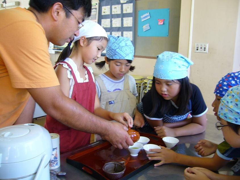 地元の茶業会の方々から手もみとお茶の入れ方を学びます。