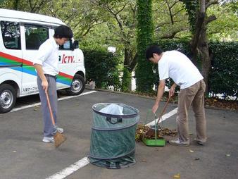 初日の朝会社が始まる前から、スタッフと一緒に外の掃除をしてくれました♪