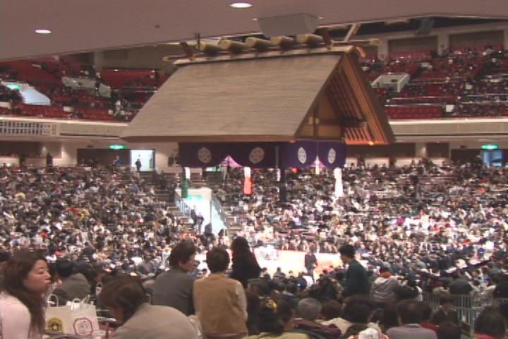 とっても広い国技館の中で、みんなは身をのりだしておすもうさんたちを見ていました