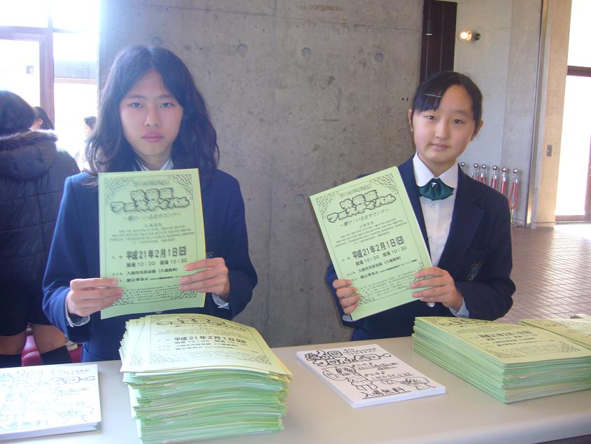 会場に入って、まずパンフレットをわたしてくれたのは、東町中学校の1年生でした!