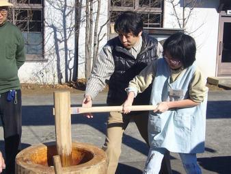今日は大学生のお姉さんたちと一緒におもちをつきました!