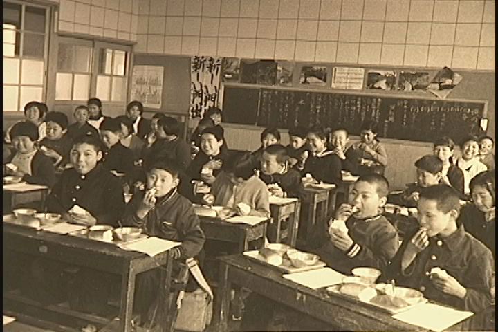 また、真ん中の写真は、金子小学校でのはじめての給食の様子!