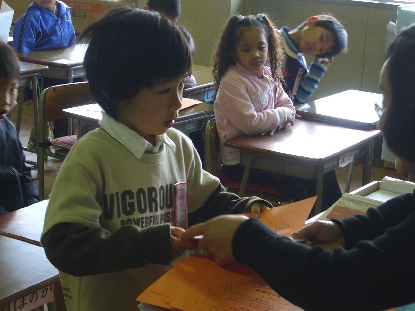 1人ずつ先生から受け取った時「ありがとうございます」ときちんとあいさつするんです