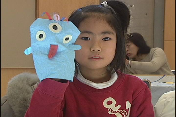 「もみがみマペット」は、その名の通り、紙をもんで作ります!