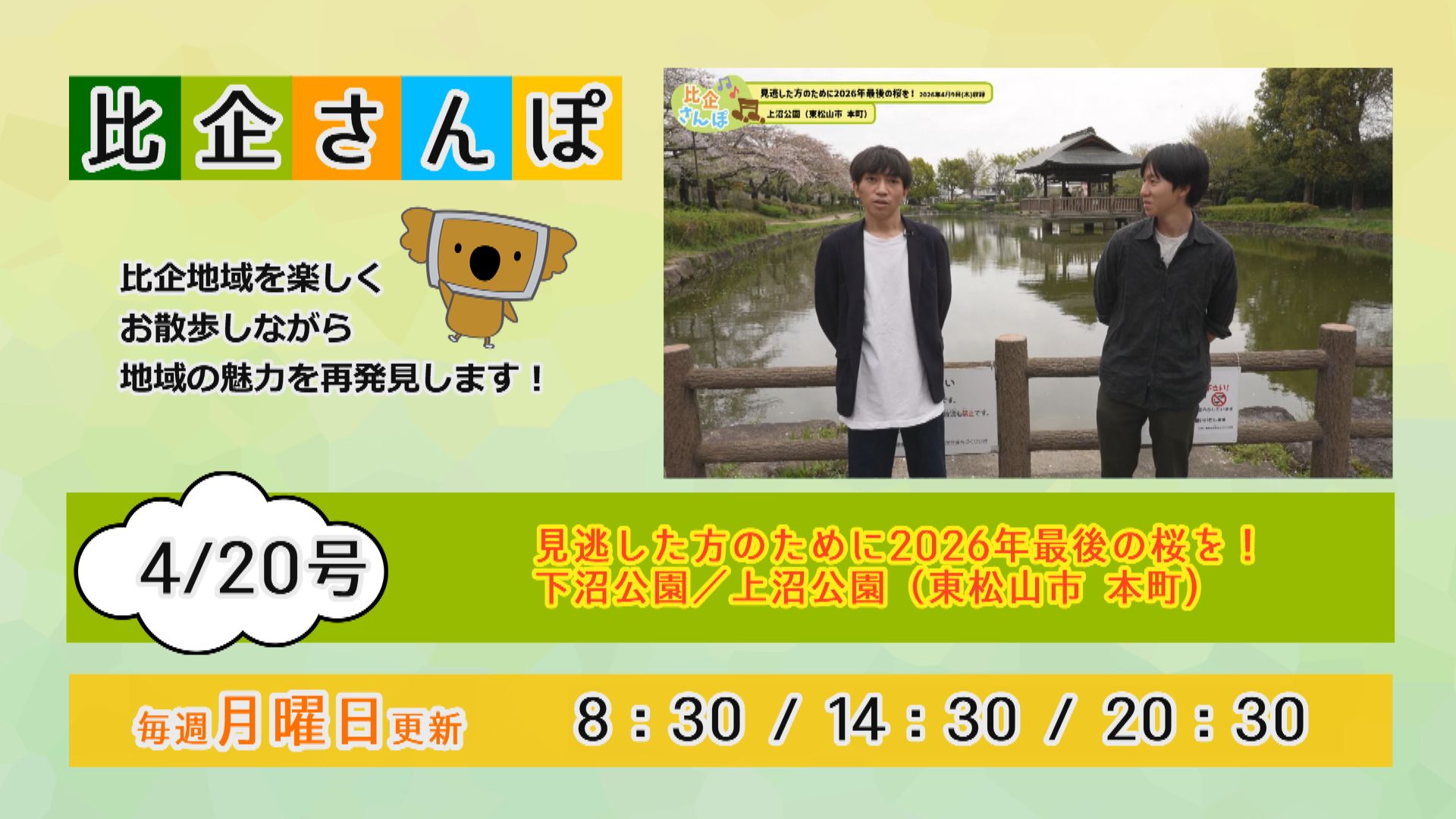 【比企さんぽ】(8:30〜/14:30〜/20:30〜) 見逃した方のために2026年最後の桜を! 下沼公園/上沼公園(東松山市 本町)