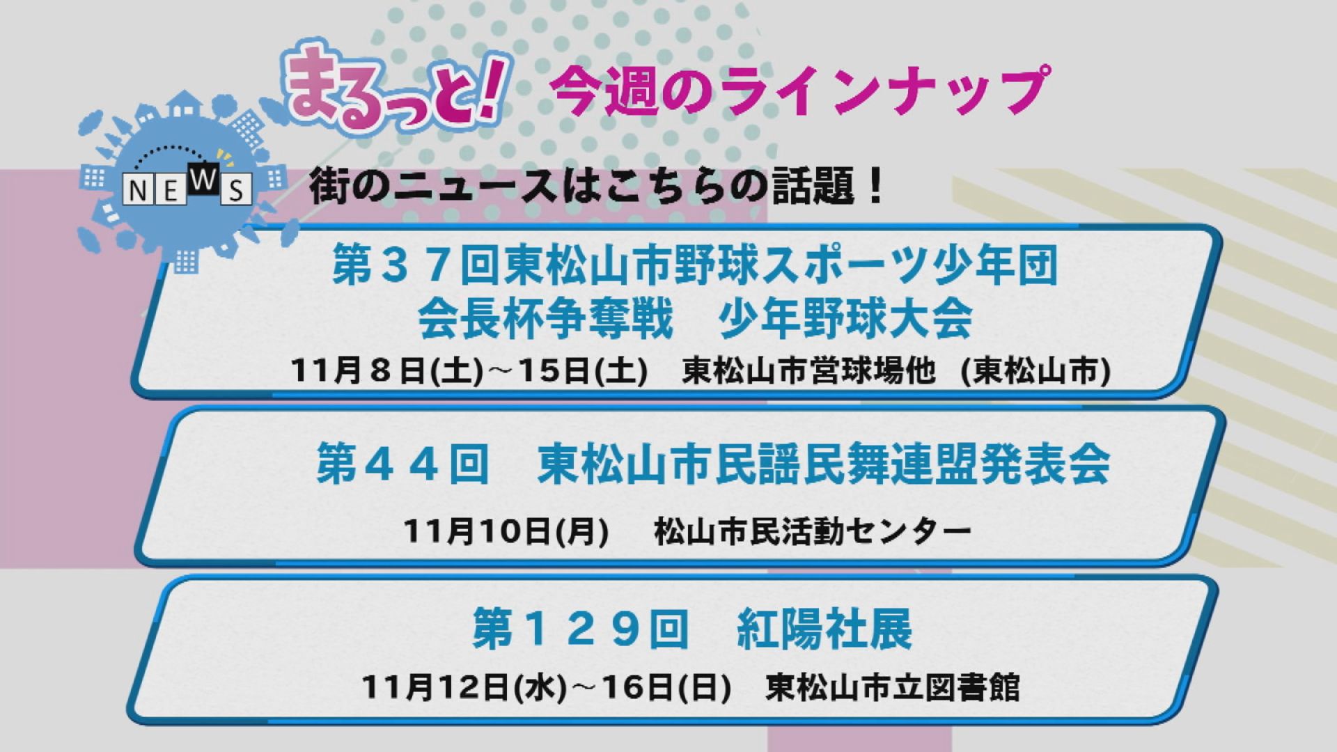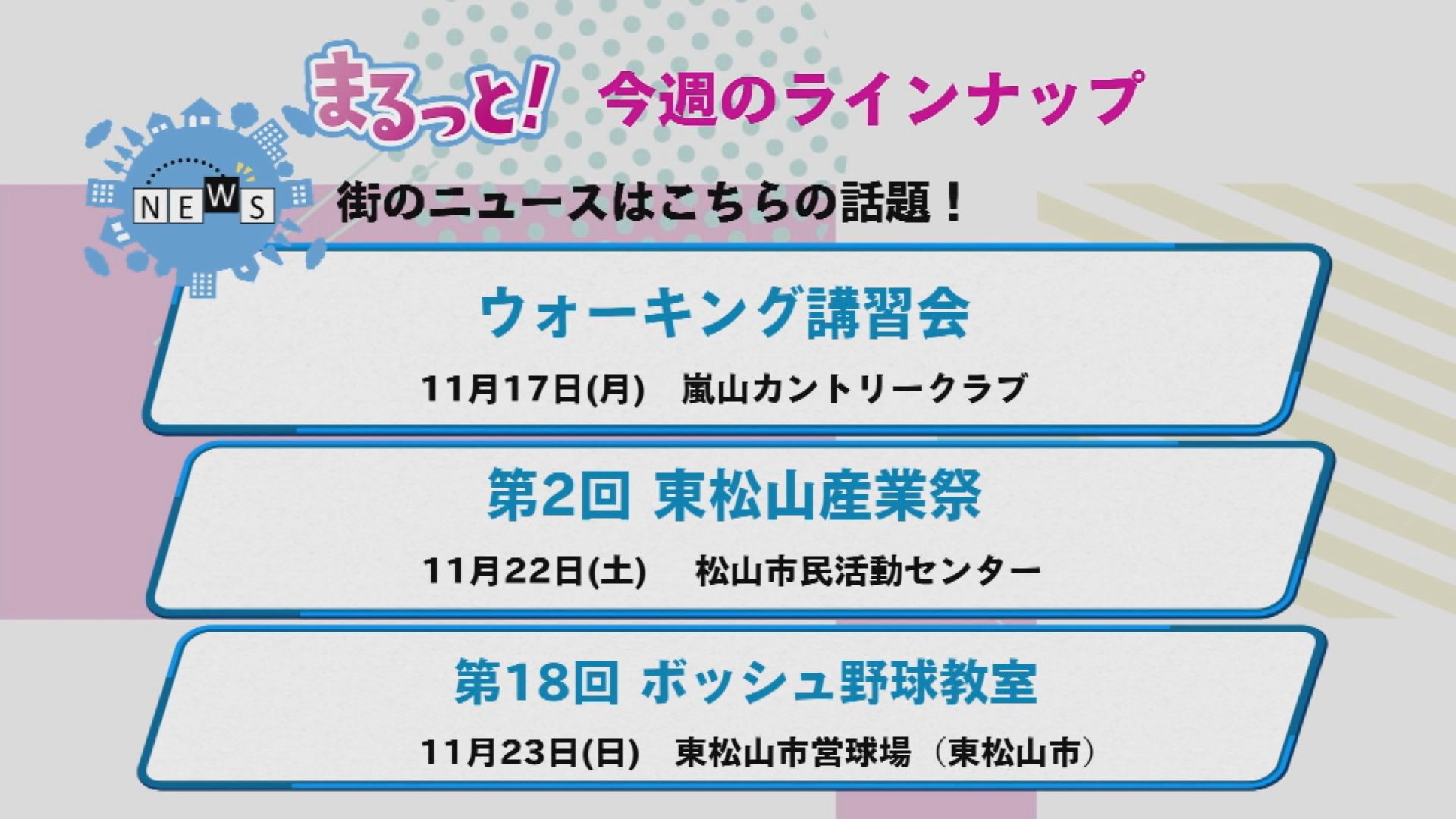 明日から放送の「まるっと!11/24号」のラインナップです。ぜひ観てくださいね〜!