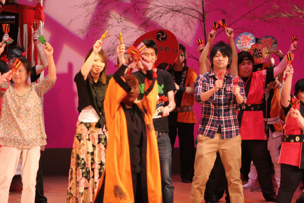 この唐獅子鳴子踊りは山形県村山市で行われる徳内まつりをアレンジした物です