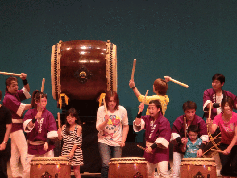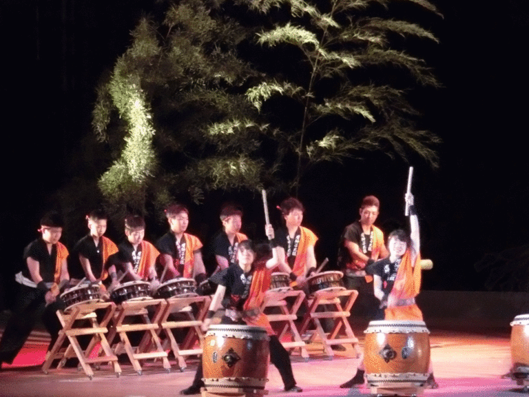 特徴は笛、太鼓、鉄筒、かけ声のおはやしに乗って踊ります