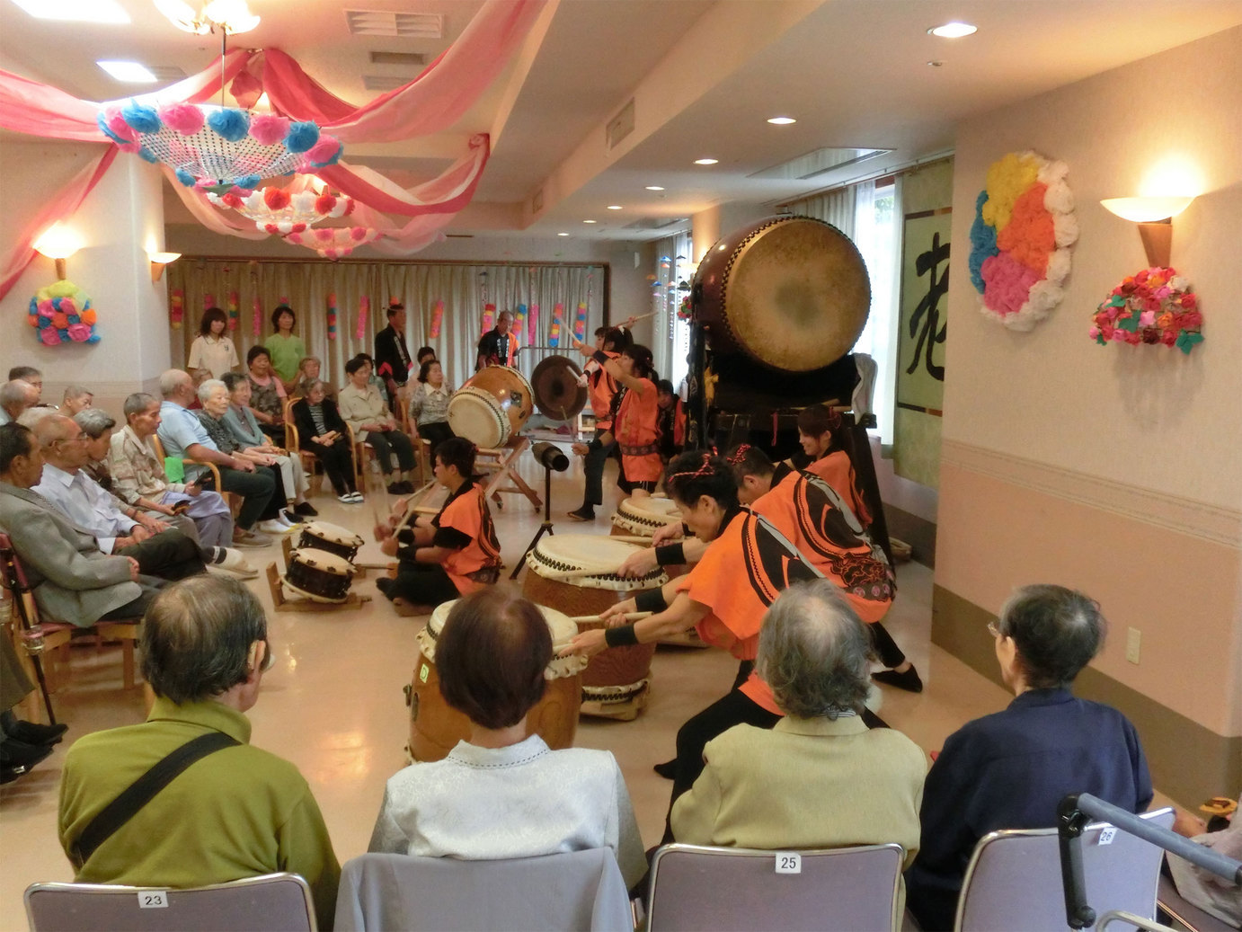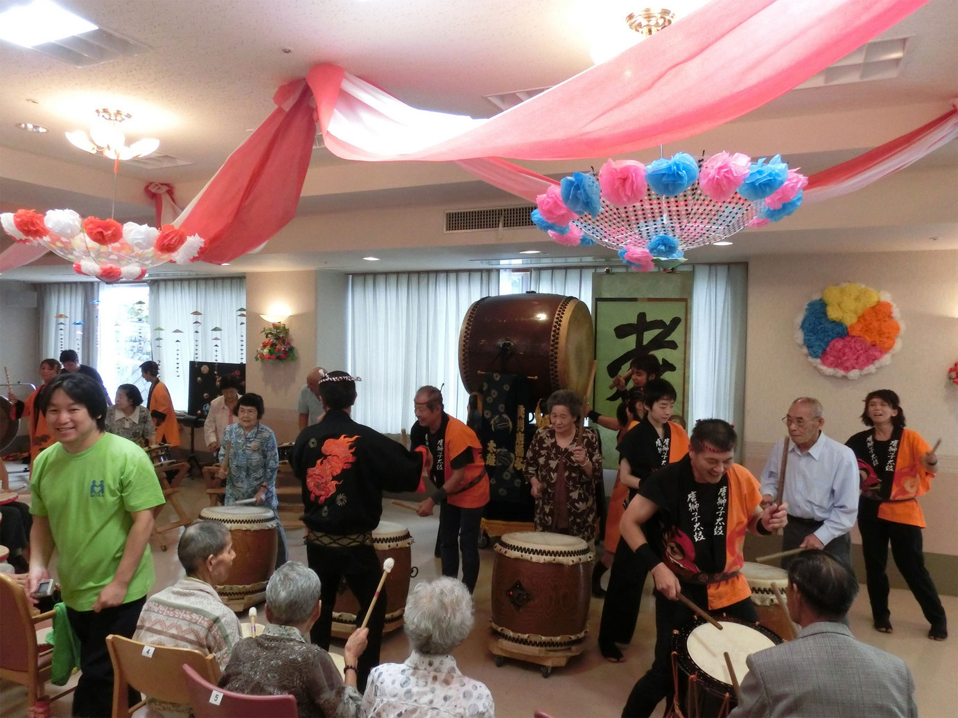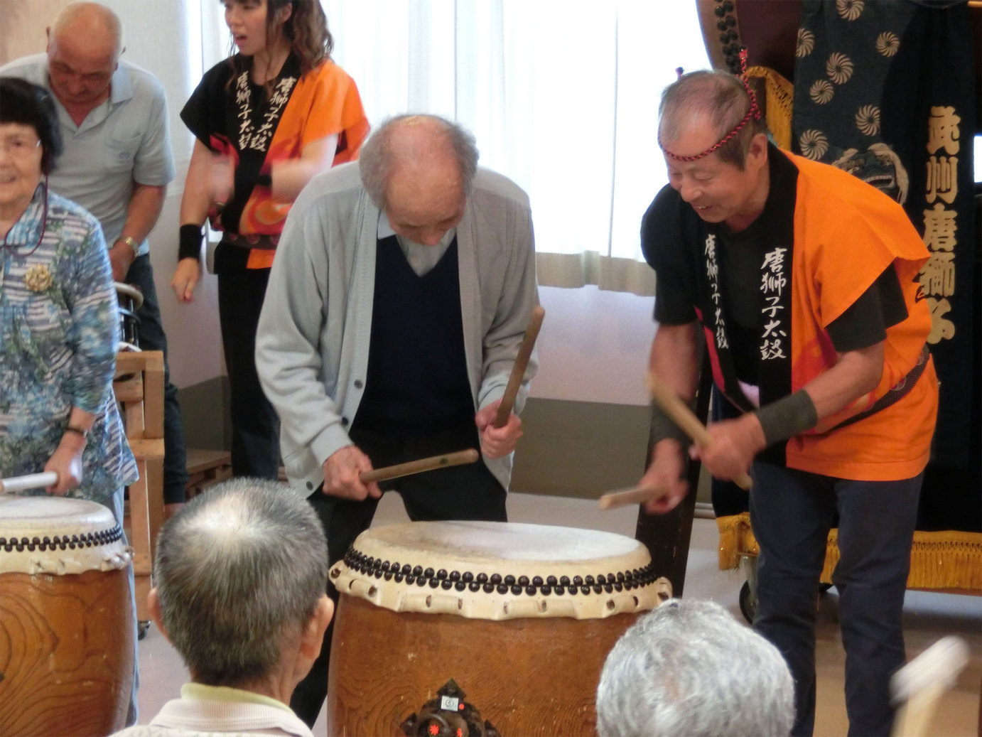 赤太鼓をお配りし又体験もして頂き一緒に楽しみました