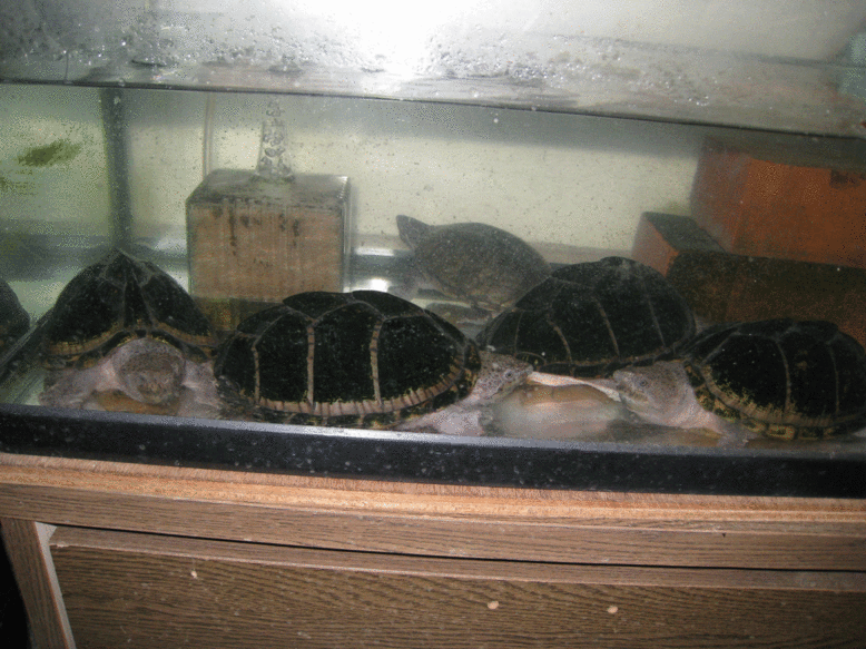 60センチの水槽は水亀のレザーバックマスクタートル(4匹)と小紋マスクタートルを飼育しています
