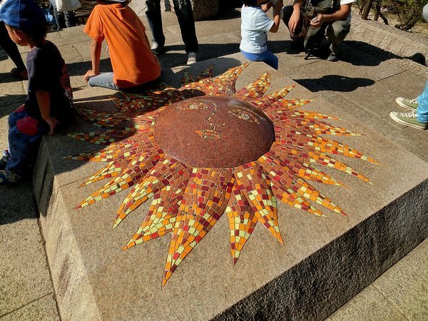 頂上に、太陽をもしたレリーフが