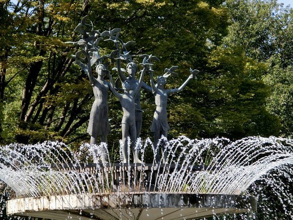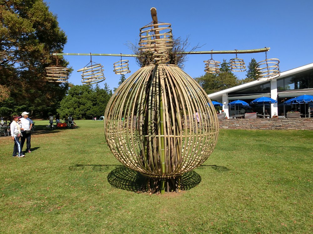 生け花の流儀の人が竹を利用したモニュメントを作成していました