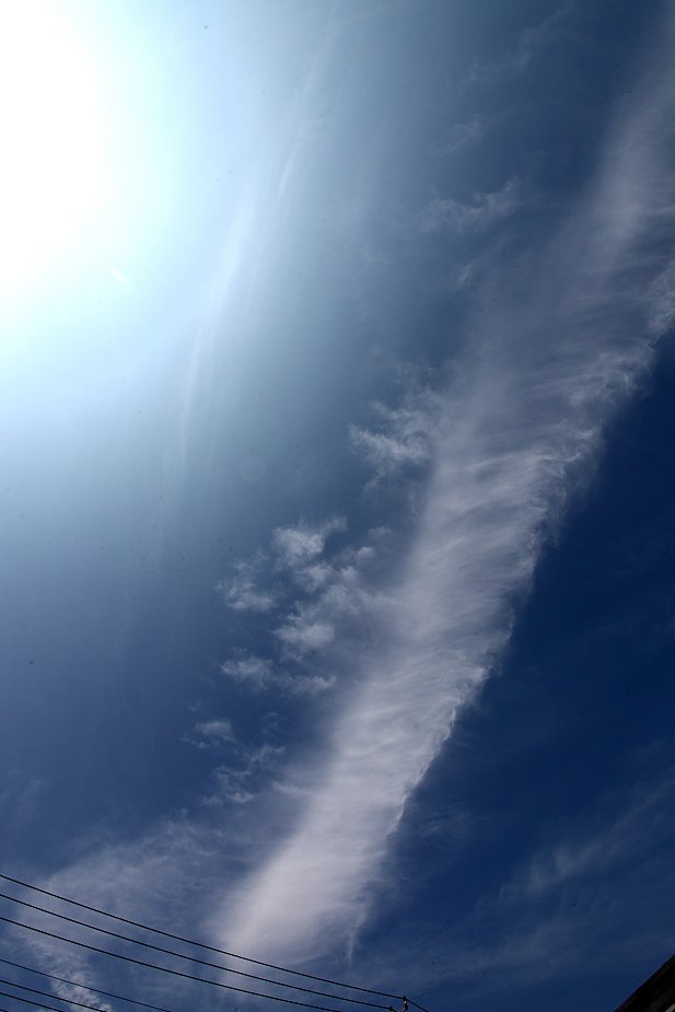 飛行機雲は、飛行機の飛んだ後の白い筋です