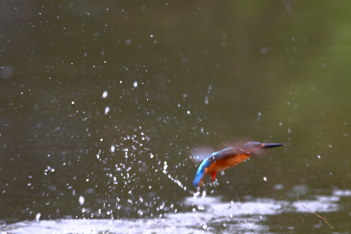 ※ホバ仕様のため、シャッター速度遅め ホバ狙いのため、カワセミの行く先を追ったため 着水点をとらえることができました しかし、お魚なし その後ピンぼけ ということで