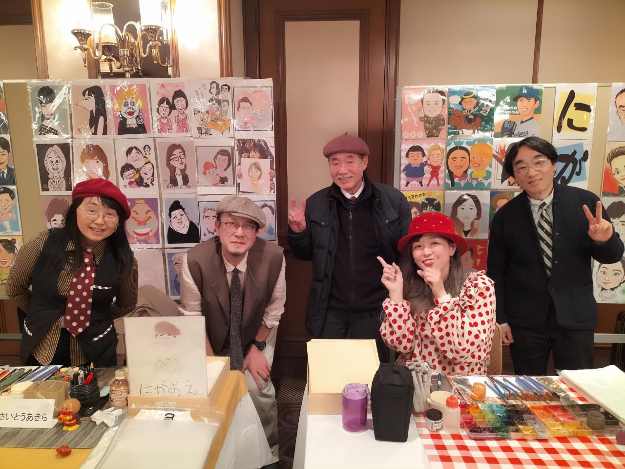 ※楽しい仲間と一緒に楽しくやれました。オウスケ氏は似顔絵を描きませんでしたが、コーディネーターとして参加。本人は“元締め”なんて自称してましたが…(-。-)y-゜゜゜僕は全部で13人描いたかなぁ…。