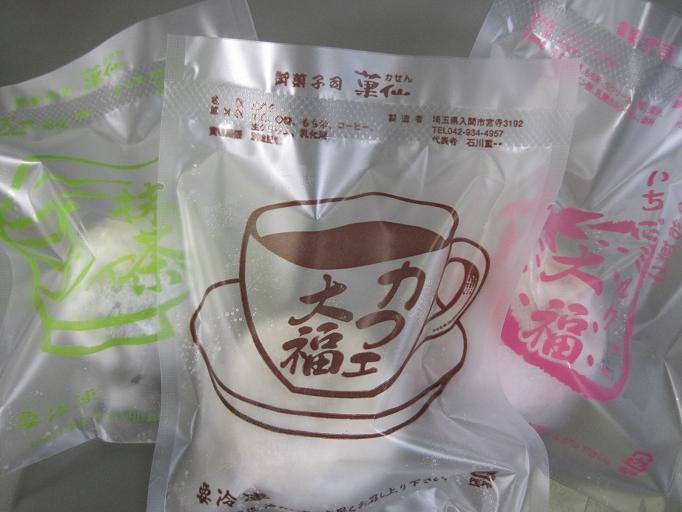スタンダードなカフェ大福に加え、カフェ抹茶、そしてこの時期は期間限定の「いちごミルク」もありました♪