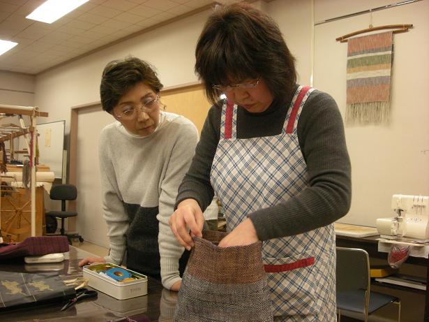どうしても一日で作ってしまいたい!と 午前中に織って、午後に縫っての強行スケジュール とっても熱心な様子でしたが、楽しそうでした♪ 完成間近ともなるとますますうれしそうな表情!