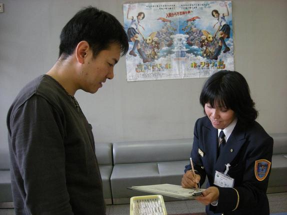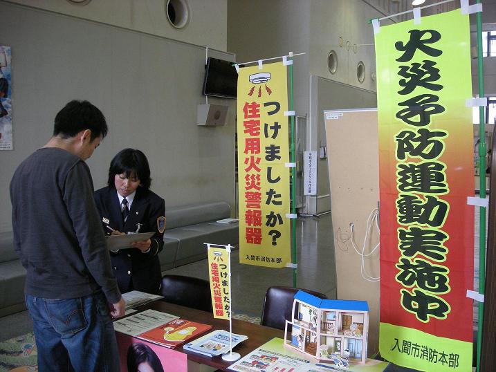市役所の入口近くのブースでは、住宅用火災警報器に