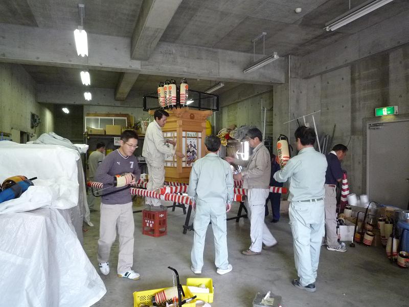 会場近くの豊岡配水場と、となりにある防災センターでは、山車やお神輿の準備が着々と進んでいます☆