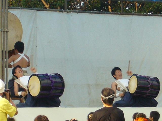 太鼓の音が空に「晴れてくれ〜」と届いているんでしょうね。土曜日の雨とはうって変わって、日に焼けるほどの暑さでした!