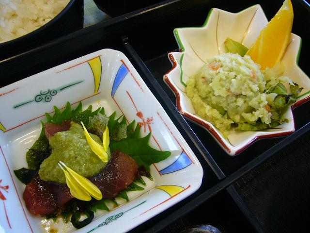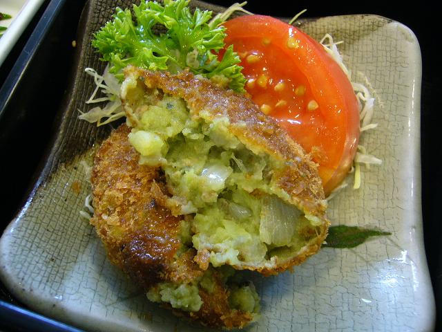 ポテトフライには煎茶・まぐろの上のトロロには抹茶、茶碗蒸しにはお茶の粉末、そしてコロッケには抹茶・煎茶・お茶の葉が入っていました〜☆☆☆