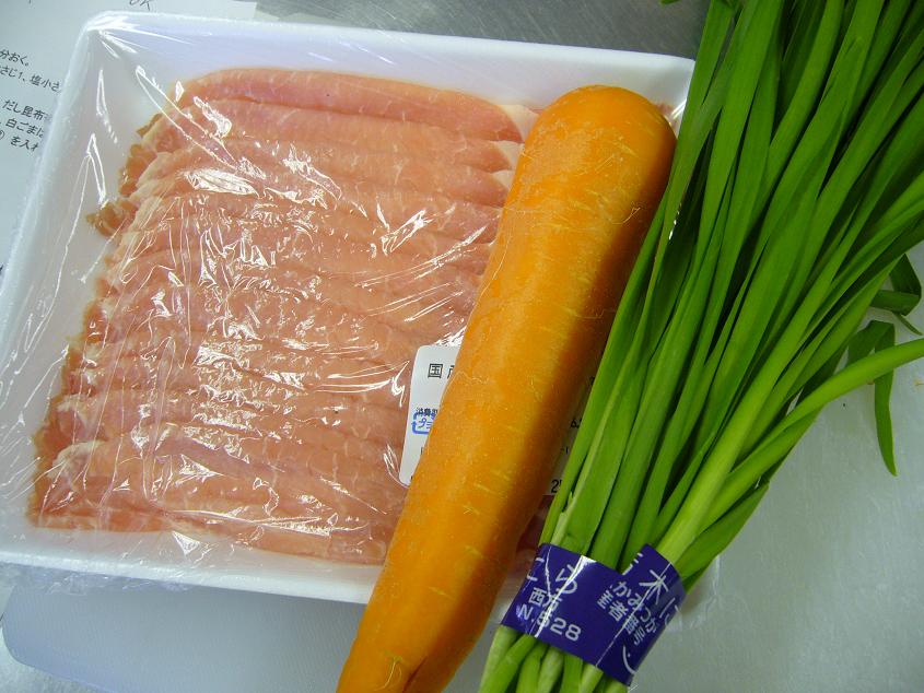 豚薄切り肉 12枚 にら 120g にんじん 90g