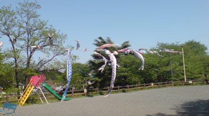 | 小谷田から金子に伸びる通称「根通り」には夫婦道の赤い旗がたくさん並んでいます