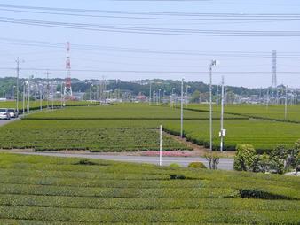 そんな茶畑の景色を一望できるのが「茶業公園」 目下一面に広がる茶畑と、そのうしろに並ぶ加治丘陵は絶景☆