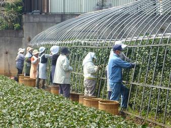 まだ露地物のお茶摘みにはちょっぴり早いので、この日はハウスで育てていたお茶の新芽を摘みました