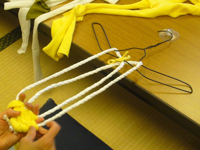しかもこれ、Tシャツを5cm幅の布に切って編むだけ