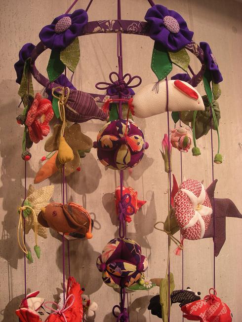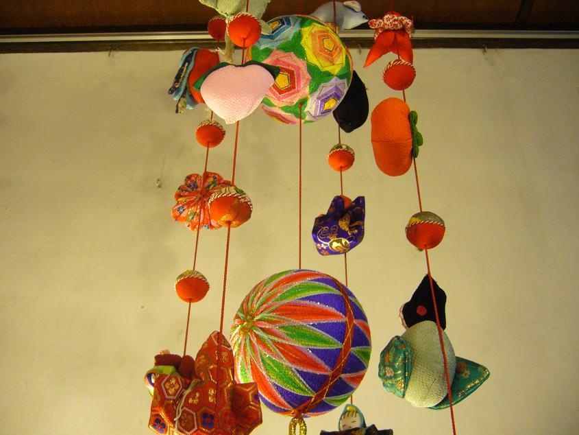 こどもや柿、うま、桃などいろいろな人形が 吊るされていますが、一つ一つ由来があるんですよ!