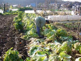 昨日伺ったところ、ちょうど畑で白菜を収穫しているところでした