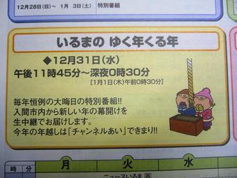 お手元に届いているチャンネルガイドの12月号には、12月31日の「いるまのゆく年くる年」の生中継の記事を載せていますが、今年は生中継を行わないことになりました