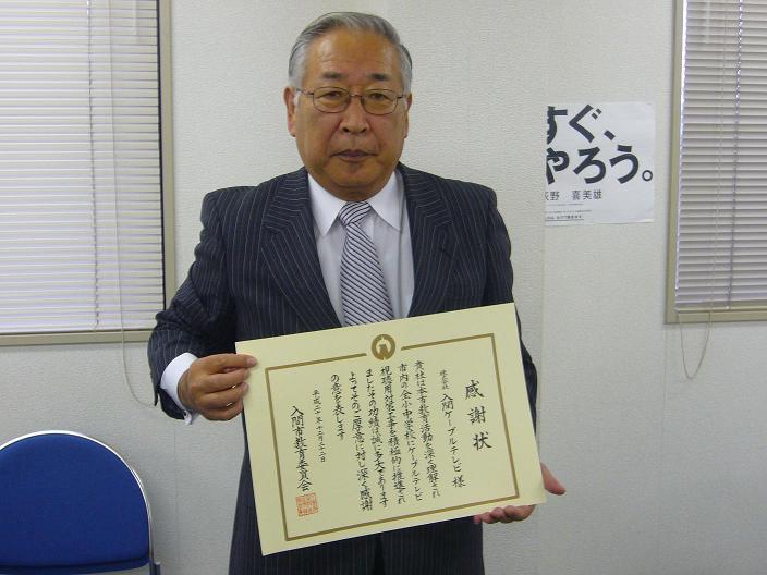 その活動に対し、感謝状を贈りたいと・・・