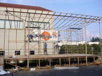 こちらでは、東町にある島崎土建のみなさんがステージの組み立てをしていました!