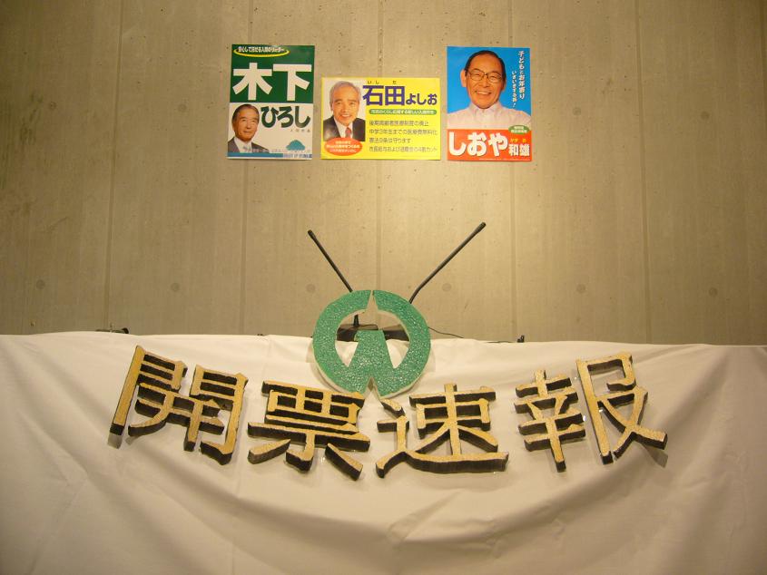 開票所の入間市市民体育館とスタジオを結んで、開票状況をリアルタイムでお伝えします。
