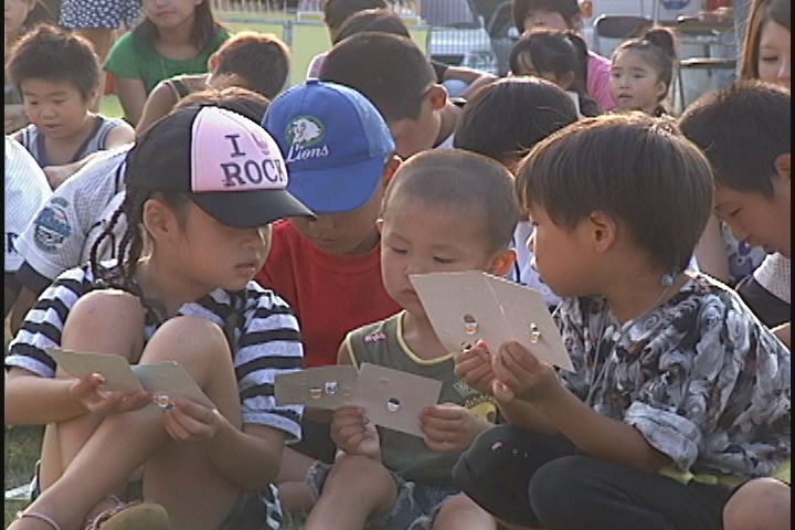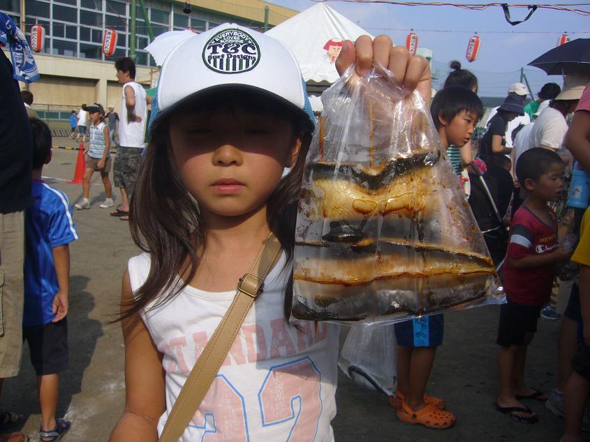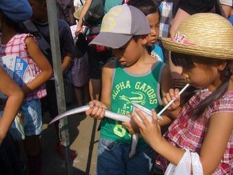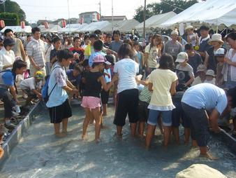 小学生たちがその中に放されたうなぎを狙っていちもくさん。 私の目には、お父さん、お母さんの方が熱くなっているように見えたような・・・?