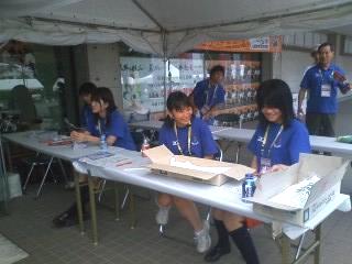 会場に入ると、小さいプールのようなお水が用意されていて「何のためのお水かな〜?・・・金魚?ヨーヨー?放水体験?」