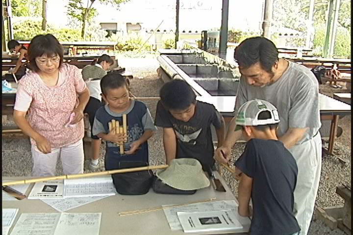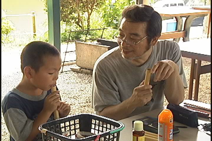 子供たちが持ってきたうなぎをお父さんがさばくさばく。 Tシャツもとっても素敵ですよね。